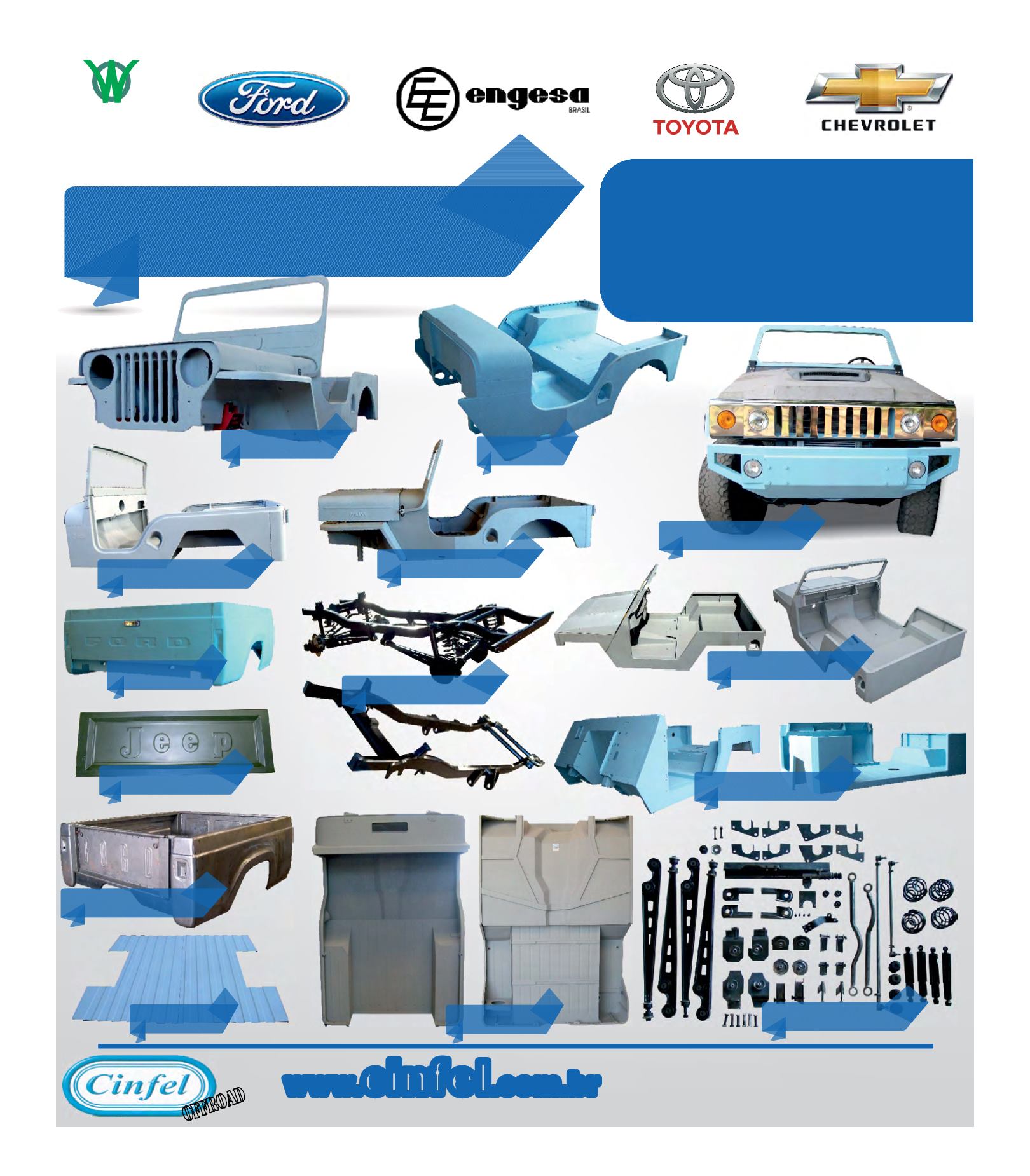 Linha completa de lataria e chassis p/ CJ3, CJ5, Engesa.