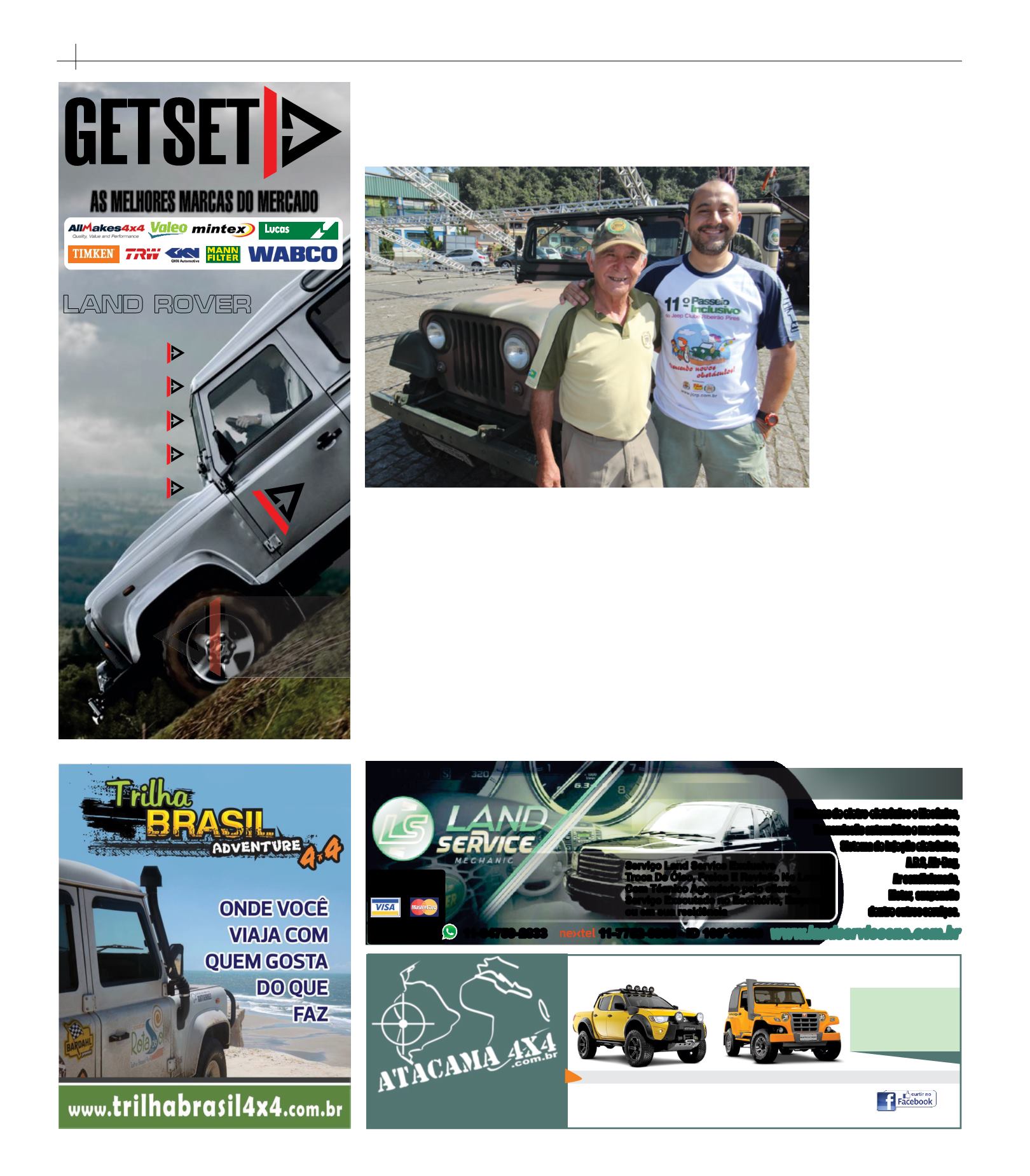 PA R T S AS MELHORES MARCAS DO MERCADO Telefone: 11-5594-6186 Cel. 11-98293-6691 Nextel: 45*4*156258 E-mail: vendas@getsetparts.com.br www.getsetparts.com.br PEÇAS E ACESSÓRIOS LAND ROVER DEFENDER DISCOVERY FREELANDER RANGE ROVER RR EVOQUE PREPARE-SE PARA SUAS EXPEDIÇÕES COM PEÇAS SOBRESSALENTESQue o jipeiro é um